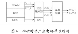 勵磁時序產(chǎn)生電路用于產(chǎn)生勵磁控制信號CON1和CON2以控制方波勵磁時序,其電路原理結(jié)構(gòu)圖如圖4所示。