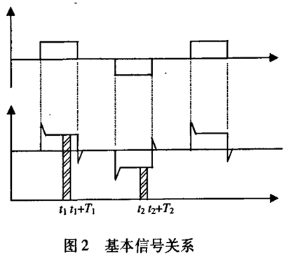 制藥廠污水流量計一般都采用工頻交流電源供電,其電源電壓的幅值和頻率的變化都會給制藥廠污水流量計帶來電源性干擾噪聲。對電源電壓的幅值變化,因采用多級集成穩(wěn)壓,一般而言電源電壓的幅值變化對電磁流量的測量精度影響不大。當(dāng)電源電壓的頻率波動時,雖然其波動范圍有限,但對制藥廠污水流量計測量精度影響較大。為了解決工頻干擾問題,實現(xiàn)對流體流速感應(yīng)電勢e柚信號的準(zhǔn)確測量,需利用以下基本關(guān)系:①勵磁周期為工頻周期的整數(shù)倍,即勵磁頻率為50/nHz(n為偶數(shù));②正負(fù)勵磁下的同相位采樣。圖2是對應(yīng)低頻矩形波勵磁形式下的典型電勢信號形式,按上述關(guān)系在一個勵磁周期下,若假設(shè)t。和t:點為工頻干擾的等效干擾點,且采樣寬度T=T1=T2,則e –ab的基本算式為:,