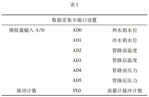 數(shù)據(jù)采集系統(tǒng)由工控機(jī)、化工污水流量計以及數(shù)據(jù)采集卡組成。 4000 次冷熱沖擊試驗要求在在*大流量 qs 條件下運(yùn)行,對流量數(shù)據(jù)的采集用到化工污水流量計及數(shù)據(jù)采集卡。化工污水流量計采集管路流量,數(shù)據(jù)采集卡將化工污水流量計采集到的數(shù)據(jù)反饋給工控機(jī)系統(tǒng)。過程中,試驗管路水溫以及水箱水位的采集控制也是通過數(shù)據(jù)采集卡反饋給系統(tǒng)控制。試驗過程用到的數(shù)據(jù)采集卡采用研華生產(chǎn)的PCI - 1711。PCI - 1711 是一款多功能 PCI 總線數(shù)據(jù)采集卡,具有 16 路單端模擬量輸入功能、2 路 12位模擬量輸出功能、16 路數(shù)字輸入和 16 路數(shù)字輸出功能、計數(shù)器功能等。為保證冷熱沖擊試驗結(jié)果的準(zhǔn)確性,嚴(yán)要求嚴(yán)格控制管路流量以及管路壓力。因此,管路設(shè)置前后管路溫度、冷熱水箱水位以及管路壓力的采集,管路流量根據(jù)化工污水流量計脈沖計數(shù)進(jìn)行采集,其數(shù)據(jù)采集卡端口設(shè)置如表 1 所示。