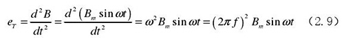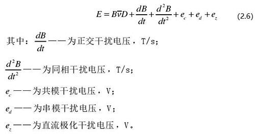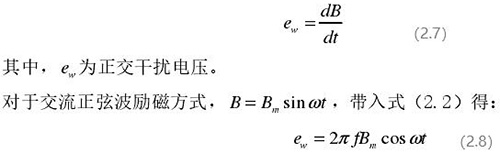 從上圖 2.5 中可以觀察到兩個(gè)電極、勵(lì)磁線圈、轉(zhuǎn)換器內(nèi)阻之間形成了一個(gè)閉合回路,將此回路稱之為初級(jí)繞組,從理論上進(jìn)行分析,磁力線 B 應(yīng)當(dāng)平行于勵(lì)磁線圈所產(chǎn)生的磁感應(yīng)線,但在實(shí)際的應(yīng)用過程中由于工藝差異,因此無法達(dá)到理想狀態(tài),會(huì)產(chǎn)生磁力線穿過勵(lì)磁線圈磁感應(yīng)線的情況,此時(shí)將會(huì)產(chǎn)生相應(yīng)的感應(yīng)電動(dòng)勢,將此部分感應(yīng)電動(dòng)勢稱為變壓器效應(yīng)。此效應(yīng)同樣滿足于楞次定律,利用楞次定律進(jìn)行計(jì)算可得如下電動(dòng)勢: