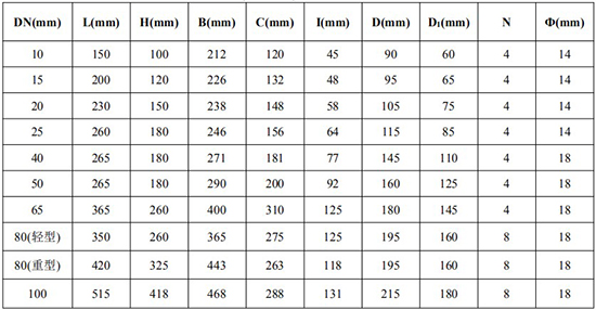 *DN10/DN50(輕型)/DN65/DN80(輕型)法蘭尺寸為 1.6MPa 標(biāo)準(zhǔn);其余口徑為 6.4MPa 標(biāo)準(zhǔn);
