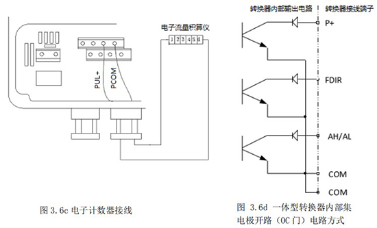 1.4.5 頻率(脈沖)、上下限報警、流向標(biāo)示等輸出均為集電極開路的電平輸出信號。