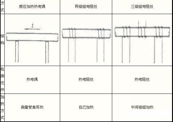 表 1 測量管加熱和檢測方式