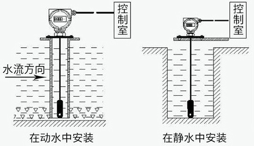 纜式靜壓液位計(靜壓式水位計)通常投入直徑大于水位計直徑的的PVC管、鋼管,管道固定在水中,不同高度打若干小孔,以便水通暢進入管內(nèi)?;蛘咴诘撞考友b阻尼裝置,以過濾泥沙和消除動態(tài)壓力和波浪對測量的影響。