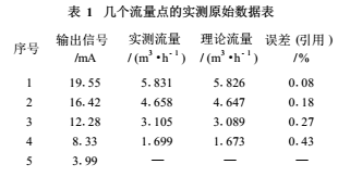 流量計(jì)廠家在出廠檢驗(yàn)**中都把實(shí)測(cè)的幾個(gè)流量點(diǎn)的原始數(shù)據(jù)以表1方式給出,從中可見(jiàn)實(shí)測(cè)的引用誤差都遠(yuǎn)遠(yuǎn)小于*大允許誤差。表1的EMF量程為6m³/h(100L/min),輸出電流為4~20mA;且在滿(mǎn)量程值50%以上的測(cè)量點(diǎn)精度較,而在滿(mǎn)量程值1/3以下測(cè)量點(diǎn)精度低。