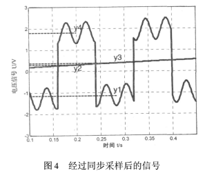 對(duì)于基線零點(diǎn)漂移,“正負(fù)差值法”是比較有效便捷的選擇,它不需要直接消除信號(hào)中的基線零點(diǎn)漂移,而是通過算法上去掉基線零點(diǎn)漂移對(duì)測(cè)量結(jié)果的影響。該系統(tǒng)中,激磁信號(hào)的頻率為6.25Hz,由于所測(cè)量的液體流速不會(huì)有明顯的突變,所以在信號(hào)的一個(gè)周期0.16s內(nèi),可以采用一個(gè)波峰減去波谷的均值來表示此時(shí)的流量信號(hào),也即如圖3中|y4-y1|其中y4是從nT+T/4到nT+T/2采樣結(jié)果的算術(shù)平均值,y1是從到(n+1)T進(jìn)行采樣結(jié)果的算術(shù)平均值。但是由于斜率零點(diǎn)漂移的存在,會(huì)出現(xiàn)如圖3中|y3-y2|的誤差,所以需要利用式(15)的結(jié)果對(duì)該誤差進(jìn)行修正,修正后的結(jié)果也就是此時(shí)管道中液體感應(yīng)出的電動(dòng)勢(shì)為: