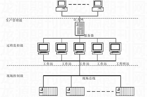 針對鎢礦選廠生產(chǎn)的實(shí)際需求,這里應(yīng)用相應(yīng)的自動化技術(shù),對自動化監(jiān)控系統(tǒng)進(jìn)行了設(shè)計(jì)。在系統(tǒng)設(shè)計(jì)中,遵循“方案合理、技術(shù)先進(jìn)、運(yùn)行可靠、操作方便”的原則,系統(tǒng)整體采用集散控制系統(tǒng),基于現(xiàn)場總線通訊,其整體網(wǎng)絡(luò)構(gòu)架如下: