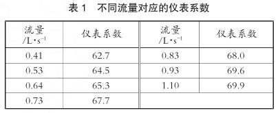 常壓熱水鍋爐熱水流量計中流速對儀表系數(shù)有著很大的影響,這部分誤差會極大影響*終計量的精確度,傳統(tǒng)的做法是當流速發(fā)生較大的持續(xù)變化時,需對常壓熱水鍋爐熱水流量計進行重新標定。針對這個問題,在不同流速下,測量了常壓熱水鍋爐熱水流量計的儀表系數(shù)(見表1)。
