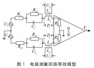 提出在硬件電路上加入模擬開關(guān), 干擾尖峰到來時斷開模擬開關(guān)避免干擾進入后級電路,尖峰過去重新打開模擬開關(guān);K.Saito 等提出漂移校正法,先以高勵磁頻率進行勵磁,在勵磁過程中插入低勵磁頻率提取用于漂移校正的非固定微分噪聲分量,但在插入的低勵磁頻率段漿液噪聲較大且很難將漿液噪聲與流量信號分離,此時的校正因子非單純的非固定噪聲分量,改進措施是長時間取平均值得到穩(wěn)定因子。 傳統(tǒng)方法是同步采樣保持法,即在磁場穩(wěn)定階段采樣。 其他消除干擾的方法有設(shè)置干擾補償機構(gòu)、控制勵磁電流變化率減小干擾幅值、矩形波代替梯形波、希爾伯特黃變換結(jié)合傅里葉變換和程控增益技術(shù)等。經(jīng)上述對現(xiàn)有的文獻分析與總結(jié)可知, 當前消除微分噪聲主要從信號處理方面入手,并未對影響噪聲的因素加以研究。 本文建立電極測量回路等效模型,給出仿真模型搭建、參數(shù)取值和仿真結(jié)果分析。