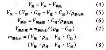 由于日常造腔中,主要注人淡水或者淡鹵水,離子濃度非常低,且日?;炛袦y量了注人液體的氯離子濃度,其他離子未詳細測量,所以在進行溶解鹽體積計算時,注人液體只考慮氯離子。