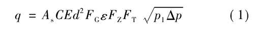 式中,、為標(biāo)準(zhǔn)狀態(tài)下天然氣體積流量,m; /s; A,為秒計(jì)量系數(shù),視采用計(jì)量單位而定,此處A=311 794 x 10 -6; C為流出系數(shù);E為漸近速度系數(shù);d為孔板直徑,mm; F}為相對(duì)密度系數(shù);。為可膨脹系數(shù);F:為超壓縮因子;F:為流動(dòng)溫度系數(shù);P,為孔板上游側(cè)取壓孔氣流絕對(duì)靜壓,Pa;0P為氣流流經(jīng)孔板時(shí)產(chǎn)生的壓差,Pao