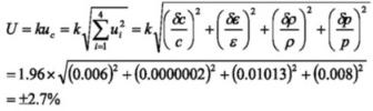對(duì)于天然氣而言,可膨脹性系數(shù)的不確定度為:δε/ε=±4(Δp/pi)%