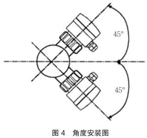 垂直安裝時確保流向由下而上,如圖 4 中箭頭所示,應(yīng)與管道水平中心線成 45 度角安裝高壓電磁流量計。