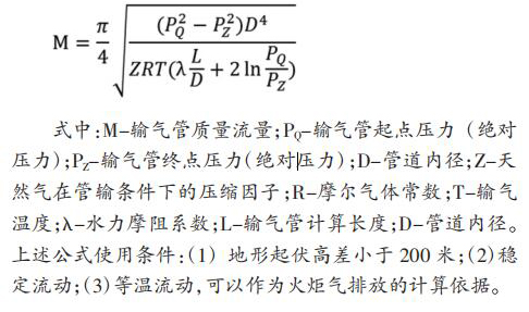 天津 LNG 設(shè)置兩座插入式電磁流量計,單臺設(shè)計處理量 60t/h, 兩臺火炬并列運行,一用一備。自 LNG 儲罐及 BOG 系統(tǒng)來的超壓 BOG 經(jīng) PV 閥后進入火炬氣排放總管,經(jīng)分液罐沉淀 BOG 中夾雜的液滴后進入火炬燃燒放空。 插入式電磁流量計設(shè)置四級排放,具體設(shè)置如表 1。 2 火炬氣排放量計算方法根據(jù)水平輸氣管流量計算基本公式: