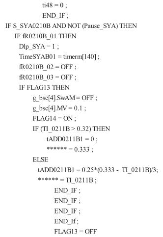 (3)從 80℃升溫到 105℃,用時(shí) 120 min。升溫梯度=(105- 80)/24 = 1.04℃/300 s,蒸汽閥*大開度為 40%。根據(jù)多次生產(chǎn)經(jīng)驗(yàn)總結(jié),進(jìn)入該階段前 60 min,設(shè)定一個(gè)*低閥限 10%,可以避免釜溫波動(dòng)過大;在該階段后期,如果蒸汽閥長時(shí)間保持較大的開度,就會(huì)造成反應(yīng)結(jié)束時(shí)釜溫沖到 110℃以上,影響二氯乙烷回收品質(zhì),所以在這一步有兩個(gè)特殊限制條件:①當(dāng)釜溫 >100℃,蒸汽閥門開度 >15%且持續(xù)保持 20 min 以上,升溫速率>1.05℃/400 s 時(shí),自動(dòng)關(guān)閉蒸汽閥;②當(dāng)該步進(jìn)行時(shí)間大于 95 min 且蒸汽閥門開度 >16%持續(xù)保持 400 s 時(shí),關(guān)閉蒸汽閥。