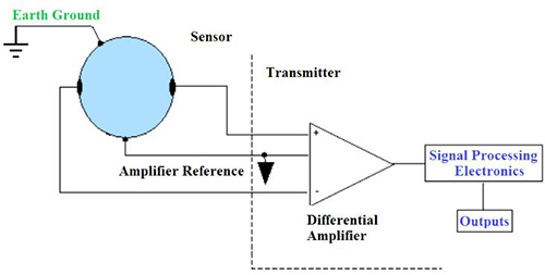 在典型的脈沖直流磁力計(jì)中,流量信號(hào)連接到差分放大器,該差分放大器與變送器外殼電氣隔離。接地過(guò)程為該差分放大器提供了穩(wěn)定的參考。