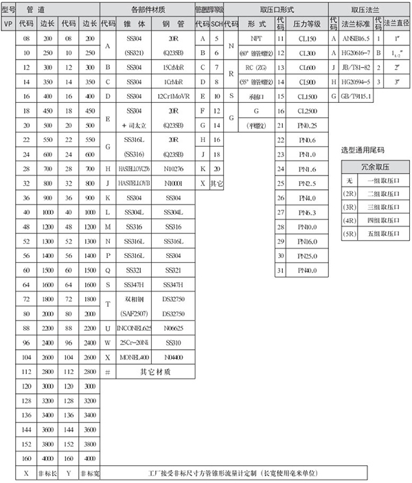 3、方管錐形流量計(jì)(VP)選型