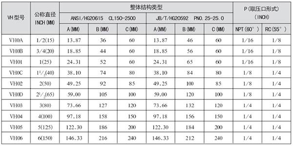 連接法蘭壓力等級(jí)(CL/MPa):150-2500/2.0-42.0、PN0.25-25.0
