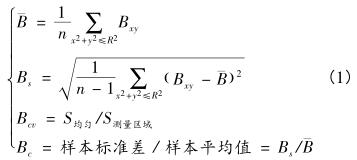 為了詳細(xì)的獲得井水流量計(jì)勵(lì)磁線圈及T型磁芯變化對流量計(jì)測量區(qū)域內(nèi)部磁場強(qiáng)度分布的影響情況,引入樣本平均值、樣本標(biāo)準(zhǔn)差、變異系數(shù)、磁場均勻度、感應(yīng)電勢值等磁場評價(jià)指標(biāo)分析傳感器勵(lì)磁線圈不同軸向長度時(shí)測量區(qū)域內(nèi)部磁場分布情況,如式(1)所示。式中,B為樣本平均值;B s為樣本標(biāo)準(zhǔn)差;B cv為樣本磁場均勻度;B c為樣本變異系數(shù)。在這4個(gè)磁場評價(jià)指標(biāo)中,樣本平均值越大越好,樣本標(biāo)準(zhǔn)差越小越好,磁場均勻度越大越好,變異系數(shù)越小越好。