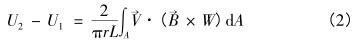 式中,U2-U1是兩電極的電勢差;A表示對所有空間積分;L為絕緣管道筒長一半;r為流量計(jì)截面管半徑;矢量珗B是導(dǎo)電流體的流速;B是磁感應(yīng)強(qiáng)度;W為矢量權(quán)重函數(shù),它是一個(gè)只由井水流量計(jì)本身結(jié)構(gòu)決定的量。由(2)式可知,只要確定了流體的流速V、磁感應(yīng)強(qiáng)度B、以及權(quán)重函數(shù)W,以及流量計(jì)管徑半徑,就可以求流量計(jì)的感應(yīng)電勢差。